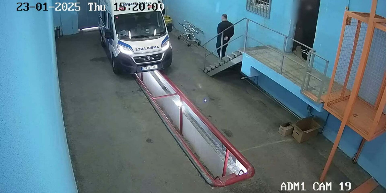 15:19 საათზე სასწრაფოს ექიმები გამოვიდნენ ოთახიდან და 15:21 საათზე პატიმარი საკაცით მოათავსეს სასწრაფოს მანქანაში;