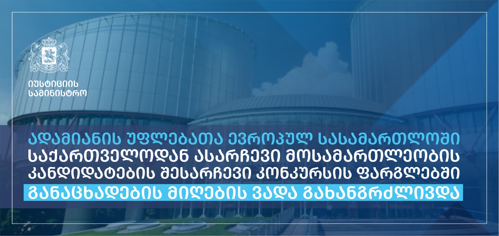 ადამიანის უფლებათა ევროპულ სასამართლოში საქართველოდან ასარჩევი მოსამართლეობის კანდიდატების შესარჩევი კონკურსის ფარგლებში განაცხადების მიღების ვადა გახანგრძლივდა